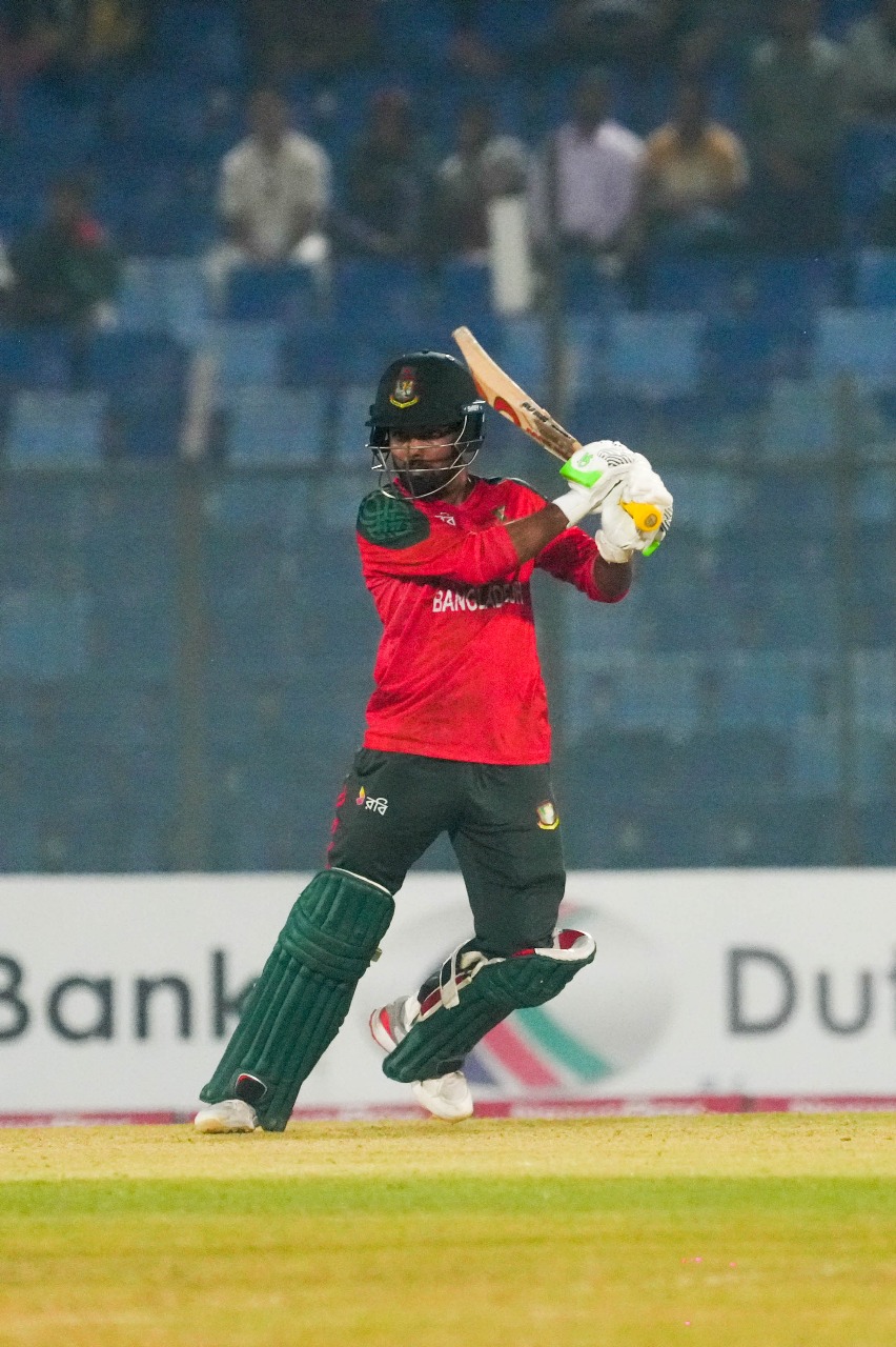 ম্যাককার্থির বলে বোল্ড হওয়ার আগে ১৩ বলে মাত্র ৬ রান করেছেন তিনি। এরপর ম্যাচের হাল ধরার চেষ্টা করেন তাওহীদ হৃদয় ও জাকের আলী। দুজন মিলে ৩৪ বলে করেছেন ৪৮ রানের জুটি। তবে ১২তম ওভারের প্রথম বলে মাত্র ২০ রান করে জাকের আউট হলেই আশা ভেঙে যায় বাংলাদেশের।